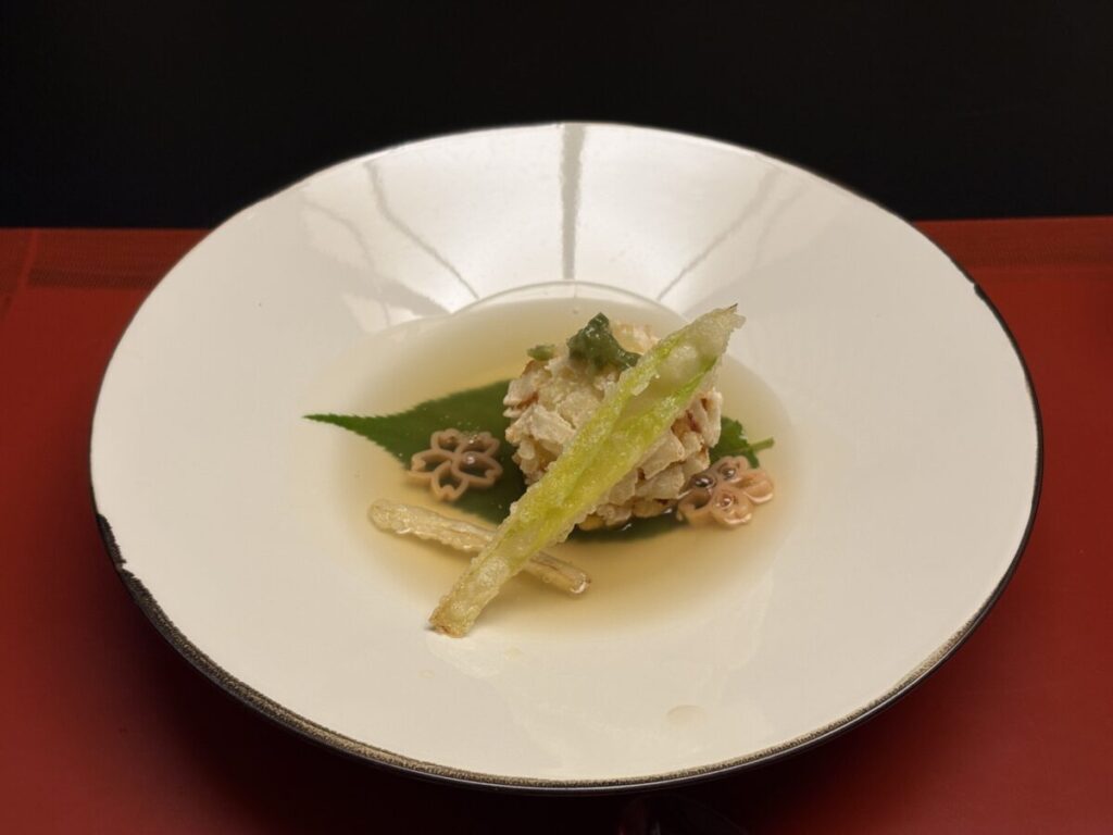 今回は3月の訪問ということで、たけのこ・つくし・桜花・ホンモロコなど、春らしい食材や器が随所に散りばめられたコースでした。