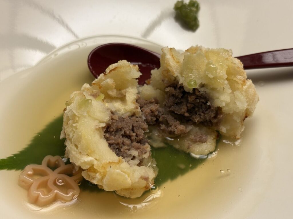 花街道饅頭は、近江牛とじゃがいもを使ったコロッケのような一品。
