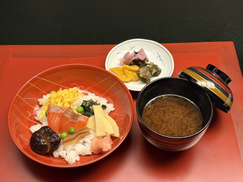 - 食事:散し寿司(伊吹サーモン他)、赤出汁(瀬田蜆)