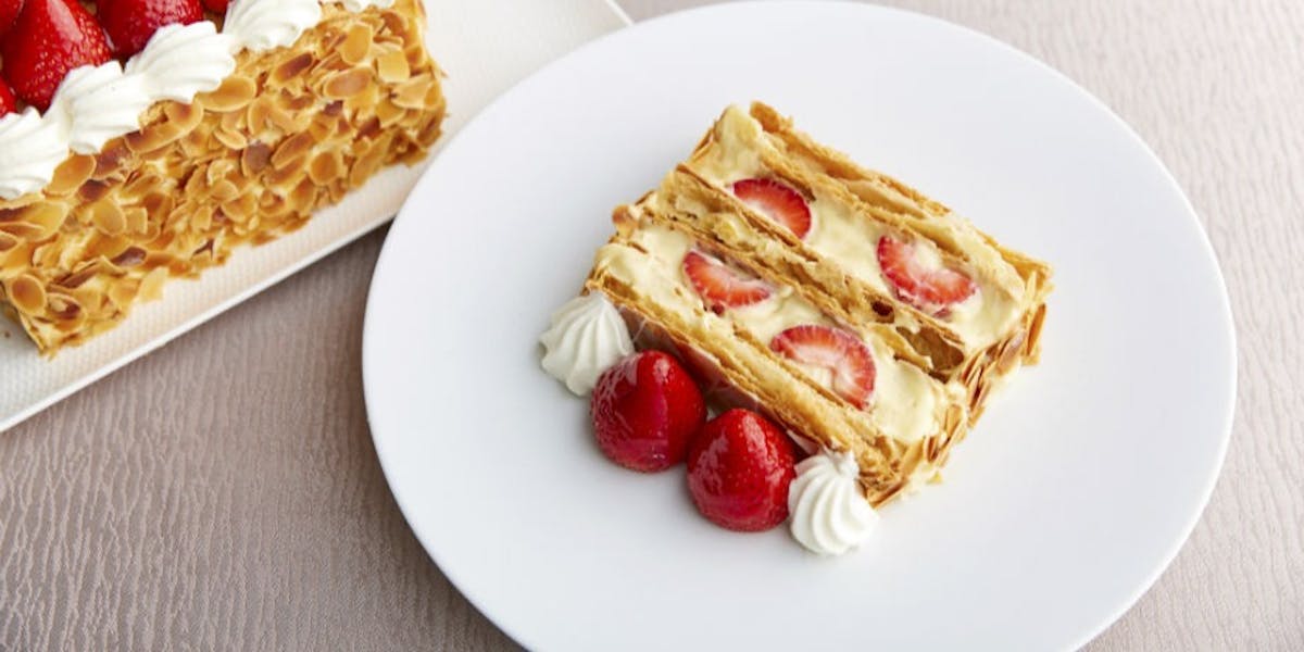 現在は「苺のミルフィーユ」という名前で販売されており、どちらの店舗でも看板商品となっています。